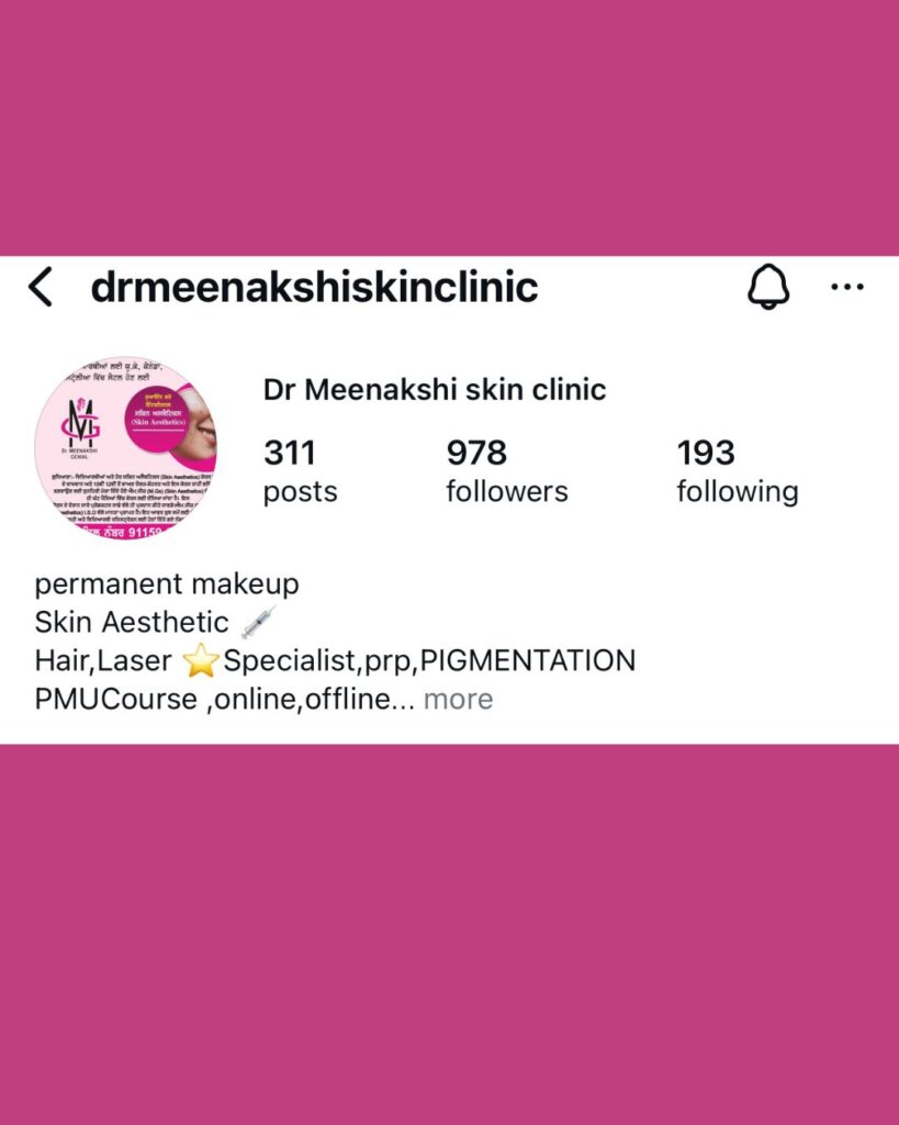 Dr. Meenakshi Singh is a Skin Specialist, Cosmetologist, and Physiotherapist with qualifications in MD Acupuncture, DAT, and BPT Physiotherapy from Delhi University. With experience at Baba Deep Hospital and her own clinic, she offers advanced skin and hair treatments such as PRP, microneedling, mesotherapy, chemical peels, scar and mole removal, along with therapies for knee pain, cervical issues, slip disc, and sciatica. Her approach combines aesthetics and physiotherapy to deliver safe, effective, and holistic care.